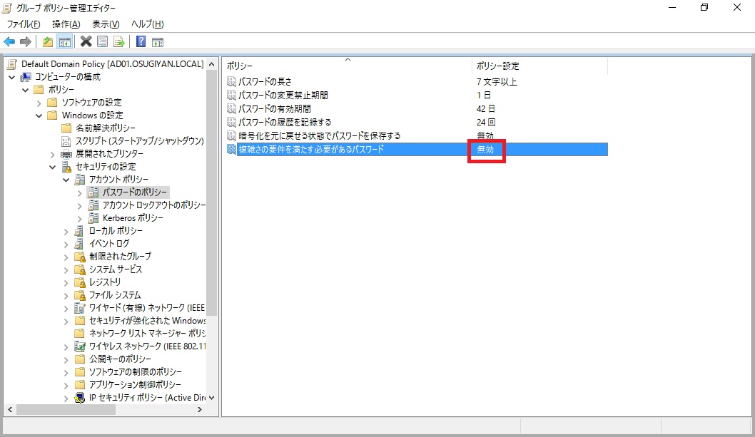Acitive Directory グループポリシーでアカウントポリシーを変更 Windows Server 2016 No It No Life おすぎやん サーバの設計 構築