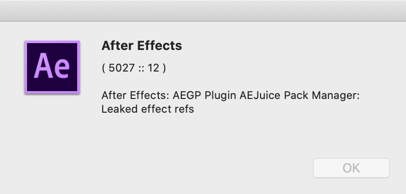 アフターエフェクト のaejuiceプラグイン実装後のエラーです Adobe Support Community 11070526