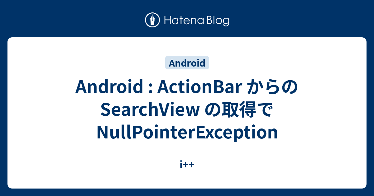 Android Actionbar からの Searchview の取得で Nullpointerexception I