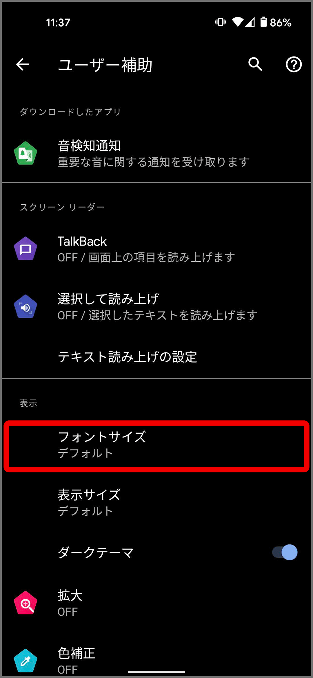 フォントサイズと表示サイズ Android のユーザー補助機能 ヘルプ