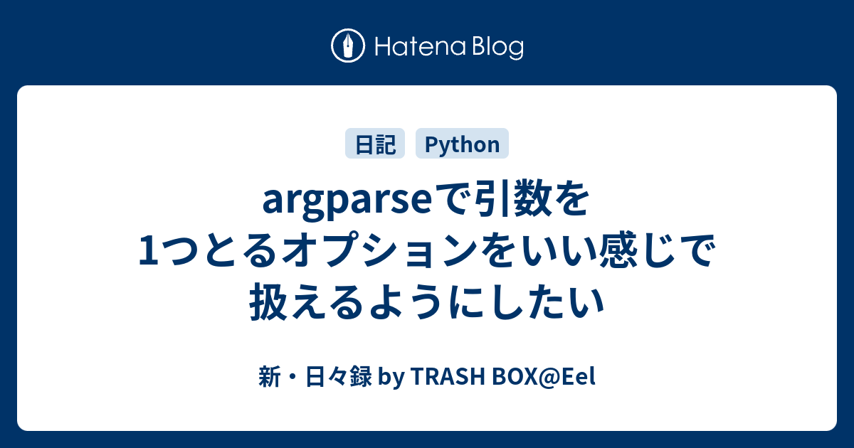 Argparseで引数を1つとるオプションをいい感じで扱えるようにしたい 新 日々録 By Trash Box Eel