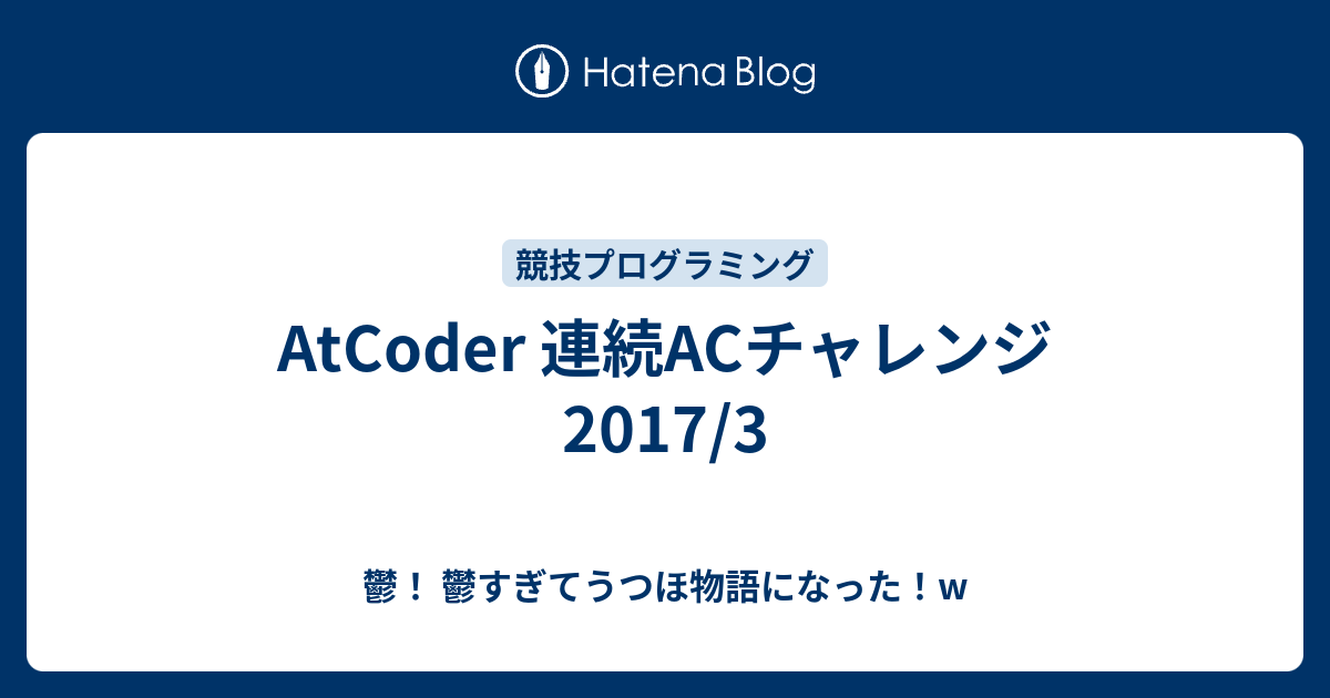 Atcoder 連続acチャレンジ 2017 3 鬱 鬱すぎてうつほ物語になった W