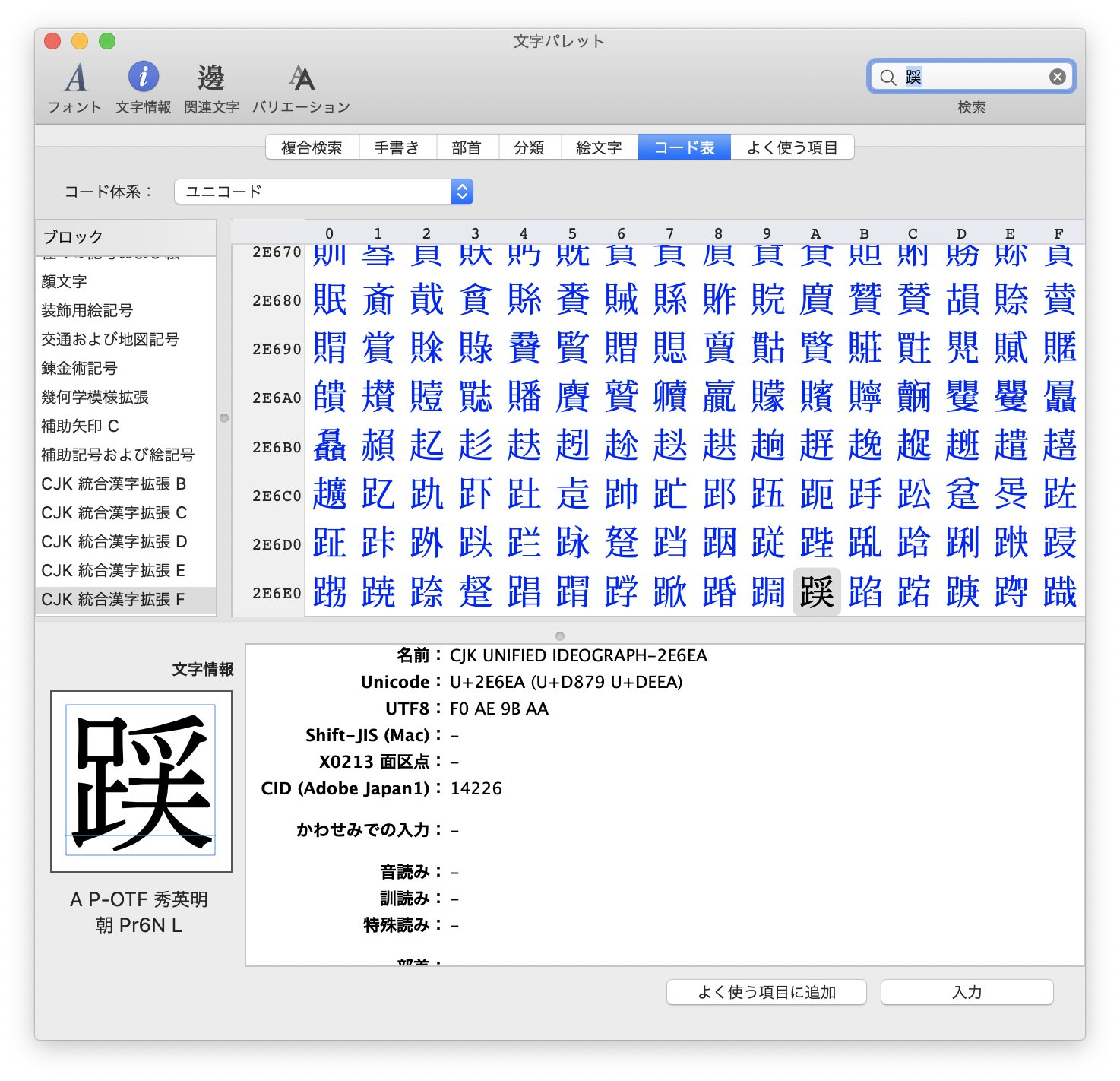 Meme Meme On Twitter かわせみ2 の文字パレットはcjk統合漢字拡張fにきちんと対応する Atok For Mac 31 1 1の文字パレットは 見出し メニューが動作しないが Cjk統合漢字拡張fの文字の表示 入力はできる Macos